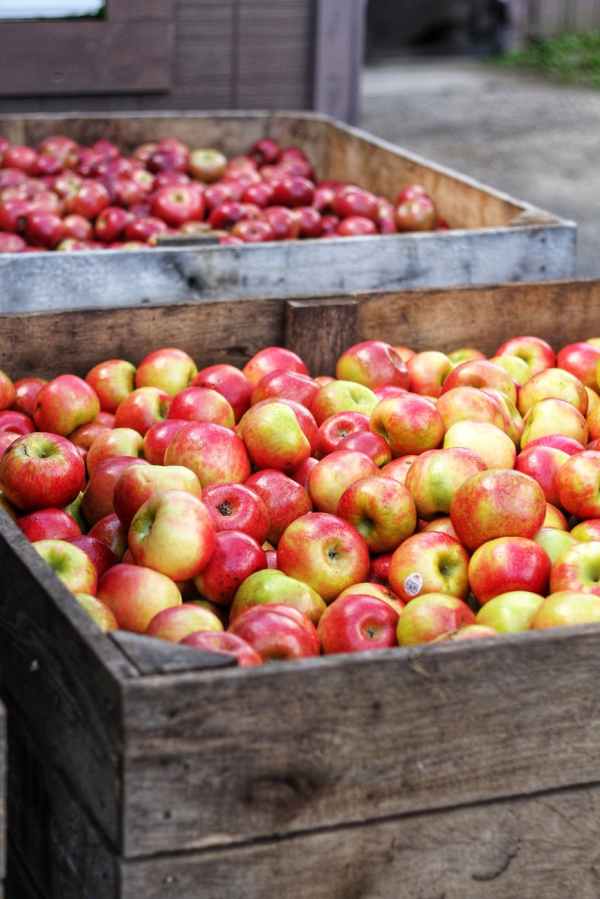 red apple lot in wooden crates