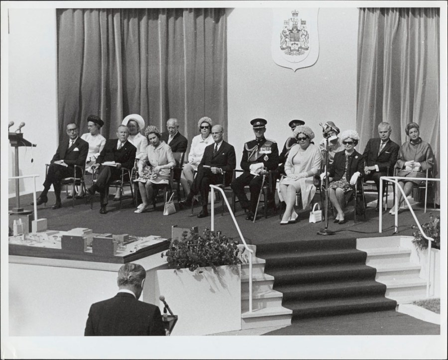 Queen Elizabeth, Prince Phillip, John Diefenbaker, and others .