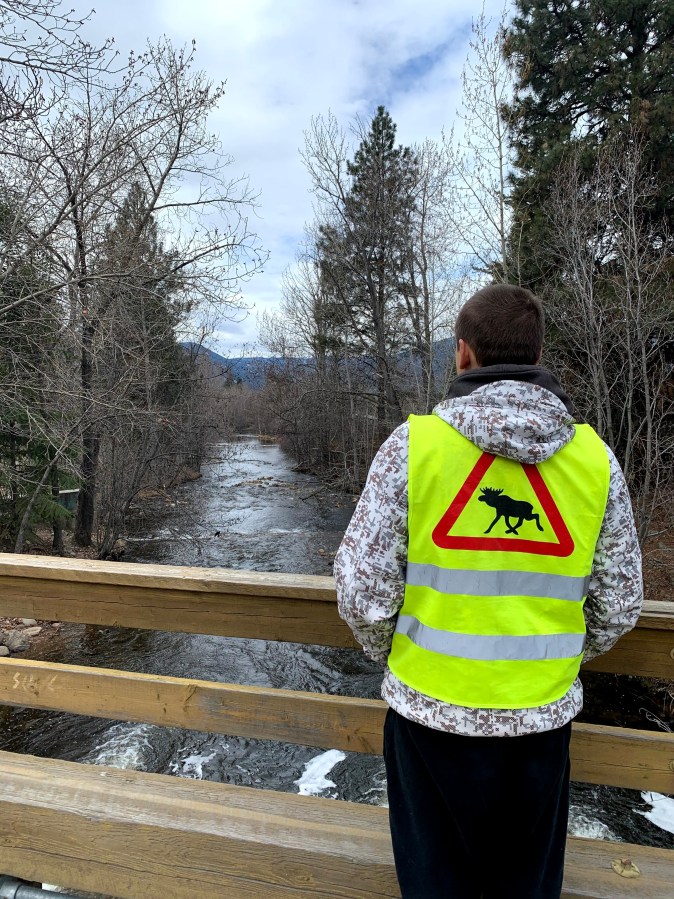 Penticton creek and #1 enjoying the fresh creek air