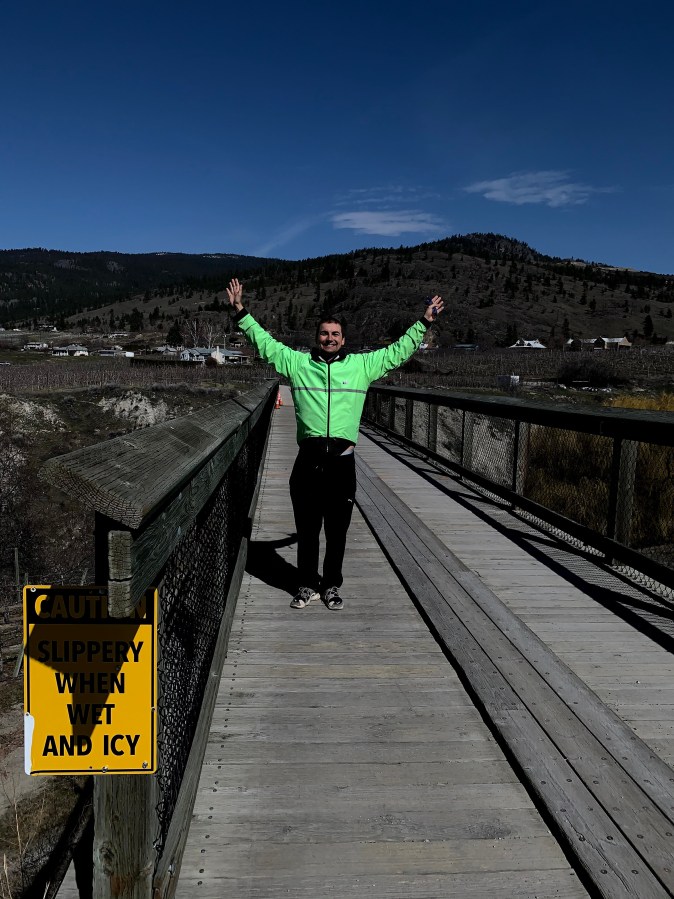 my son on a former railway bridge, in Naramata BC