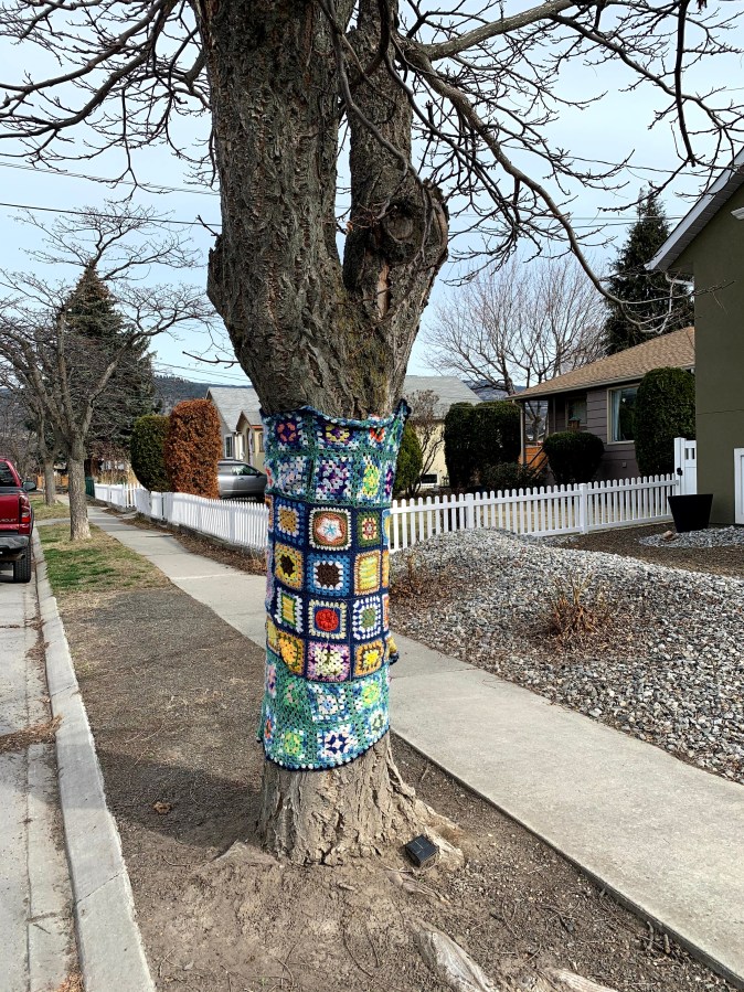 An extra treat while bike riding was finding these fancily dressed trees downtown.